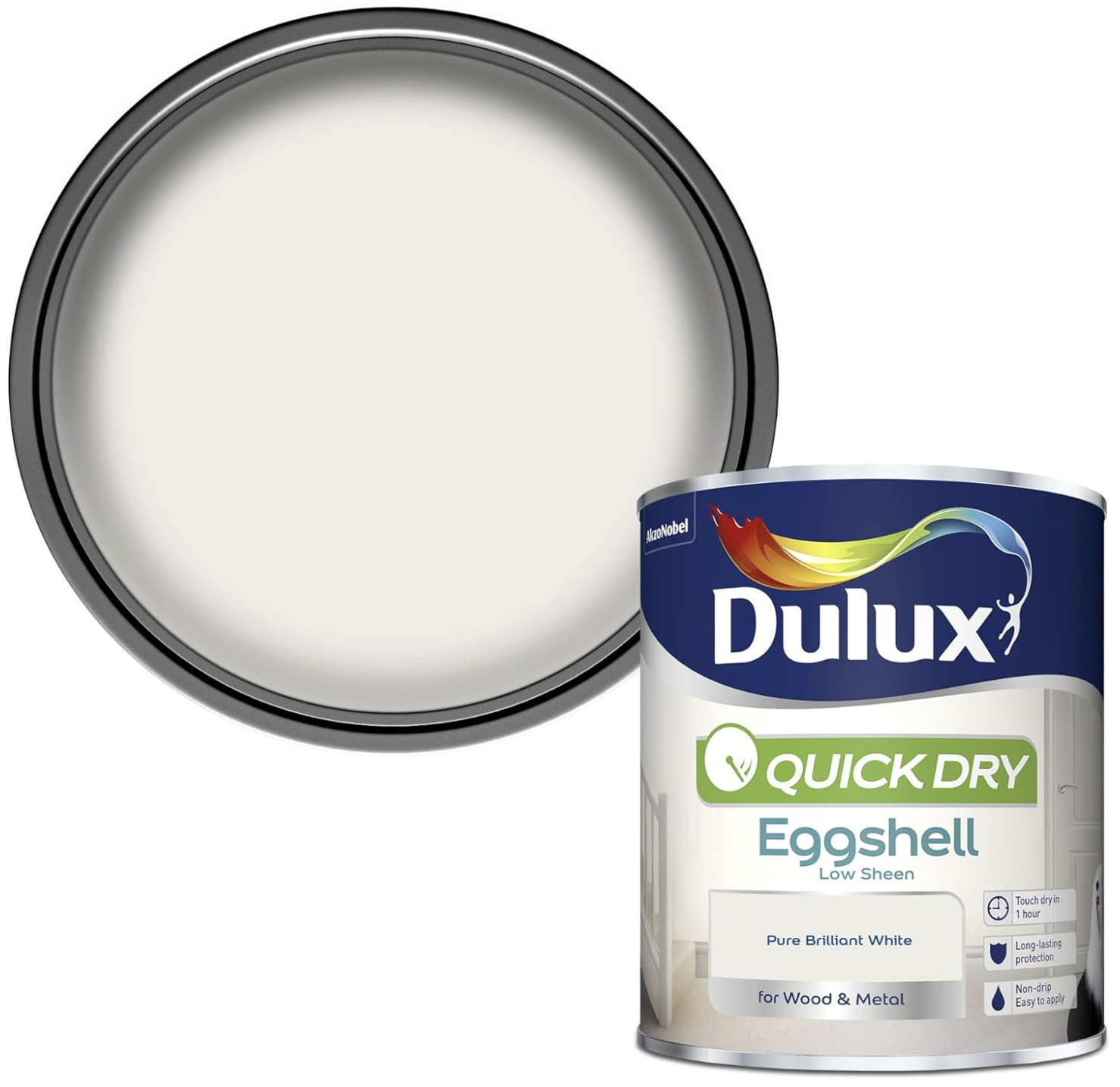 Home DIY & Tools Dulux Quick Dry Eggshell Paint For Wood And Metal – Pure Brilliant White 750 ml