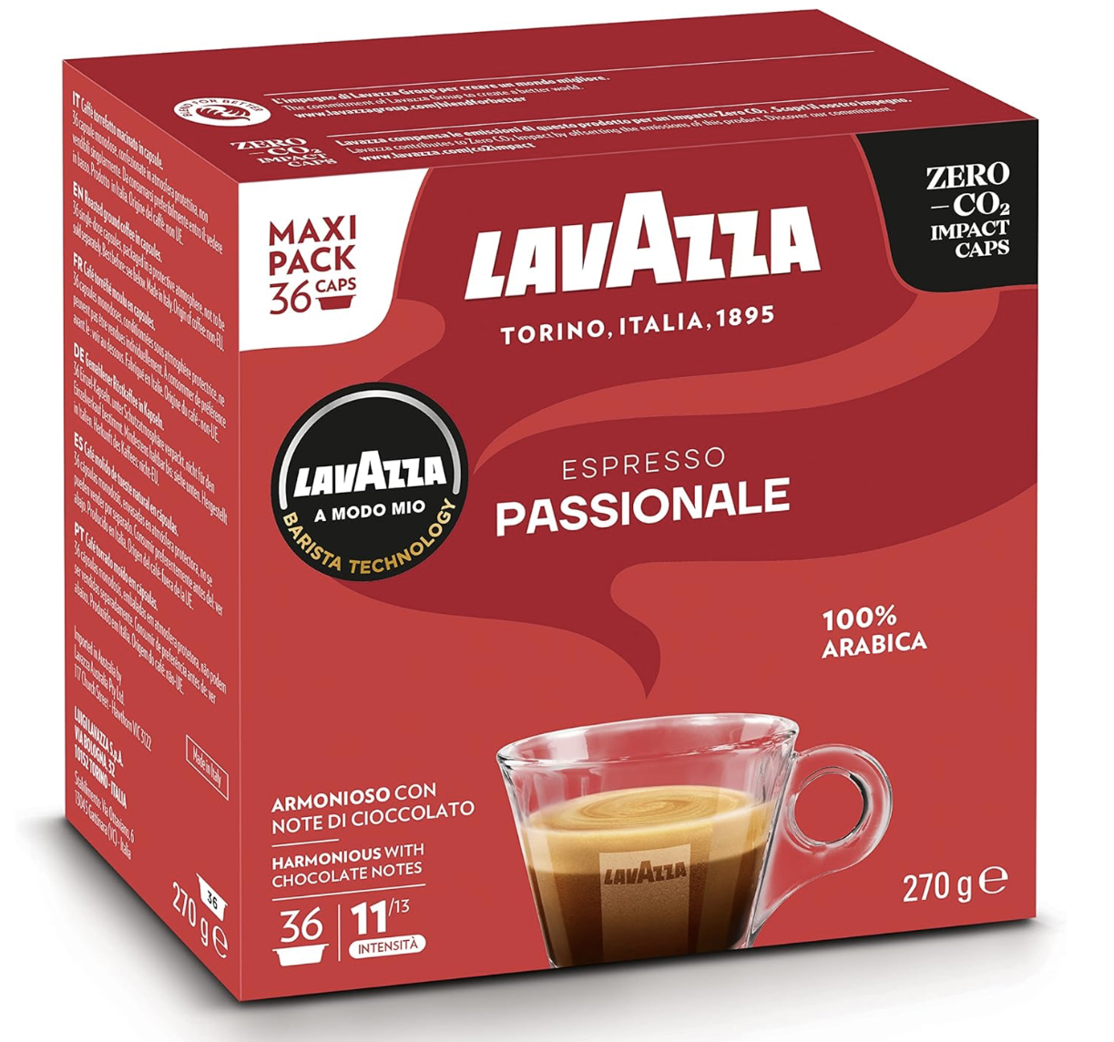 Lavazza, A Modo Mio Espresso Passionale, 36 Coffee Capsules, Intensity 11/13