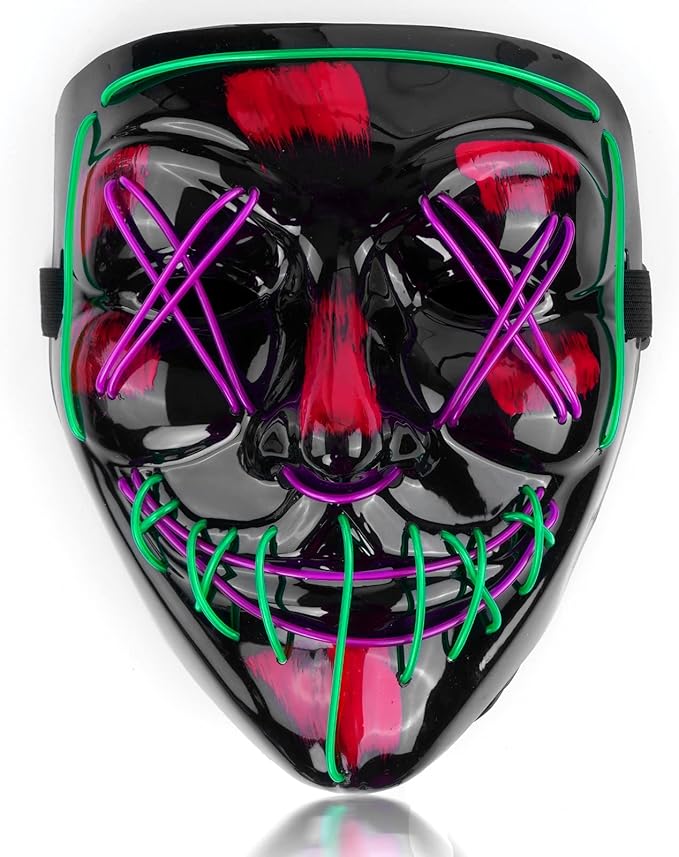 Home Toys & Games LED Mask, Black Horror Full Face, 2 Color Neon Light Glowing for Halloween