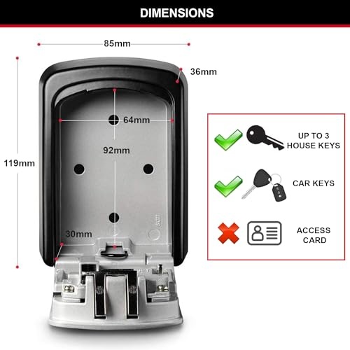 - Lock box application: for indoor and outdoor use; wall mount key safe is best used for Key and access card storage; Large internal cavity allows secure storage for multiple keys