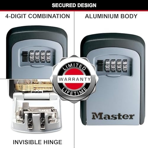 If you’re still hiding your spare keys under the doormat, it’s time for a better, more secure solution. The Master Lock no. 5401Eurdcrm select access key lock box features a 83mm wide metal body for durability and accepts multiple house keys. Stop hiding your keys under the doormat or under a flower pot: select access is the perfect solution to share access to your keys. The wall mount design offers permanent installation. Set-your-own 4-digit combination for keyless convenience and increased security. The shutter door protects combination dials from weather, dirt and grime. The limited lifetime warranty provides peace of mind from a brand you can trust.The 5401EURD is a great key safe for families with children who may need to enter the house when an adult isn’t present. With a compact, lightweight design, The 5401EURD key cabinet can be mounted anywhere. The mounting kit is included in the package for ease of use.