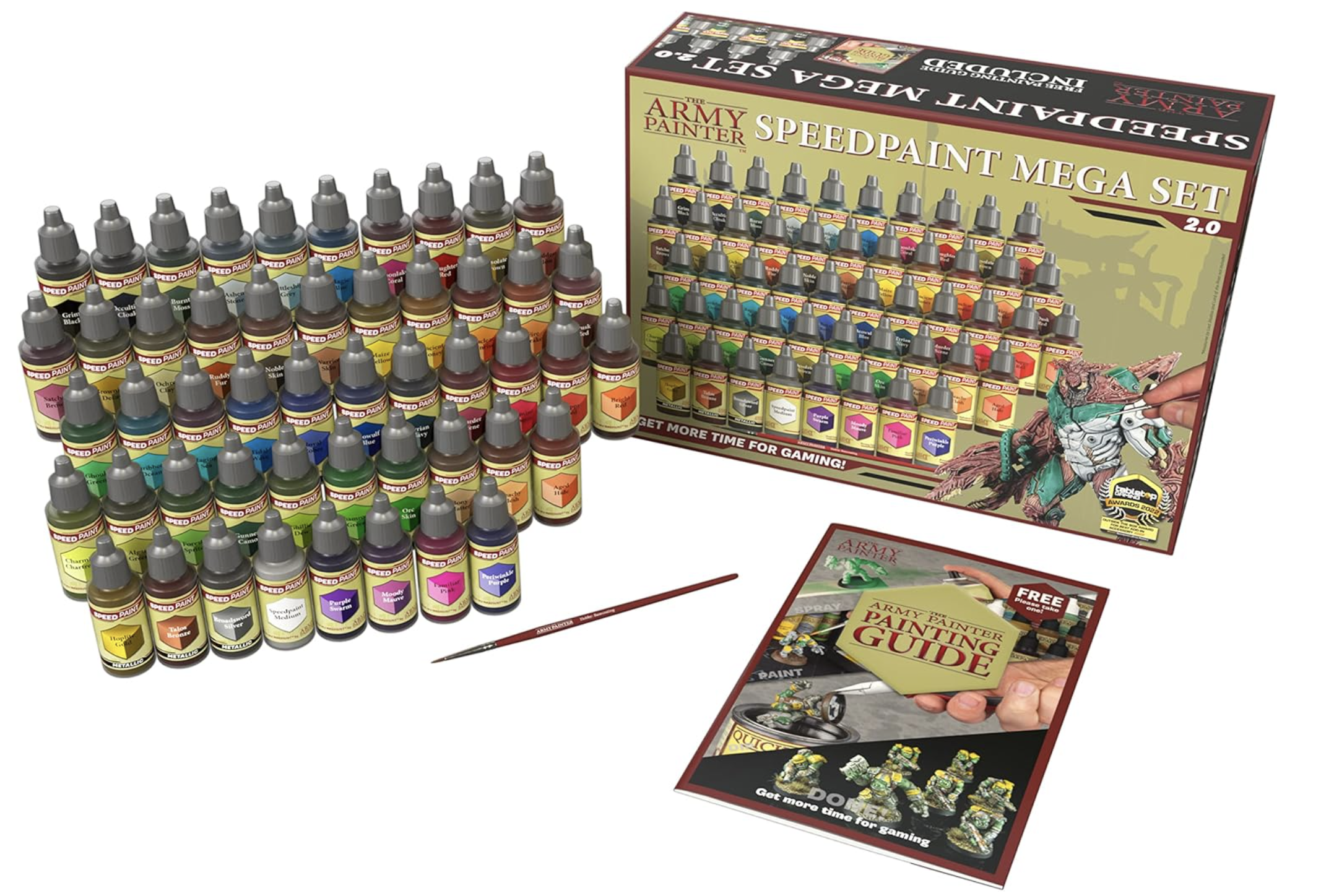 The Army Painter, Speedpaint Mega Paint Set 2.0, 50 x 18ml Acrylic Contrast Paints, incl. Metallics, 1 Medium & 1 Free Brush